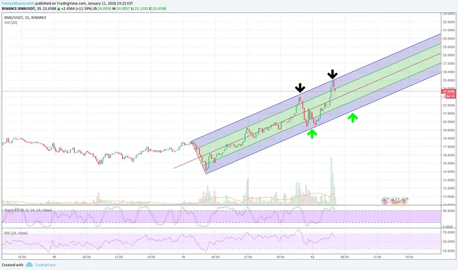 BNB has been trading within a pitchfork on its current bullrun. look for signs of reversal in the 21-22 region. if it breaks down the pitchfork it could retreat as low as 18-19.