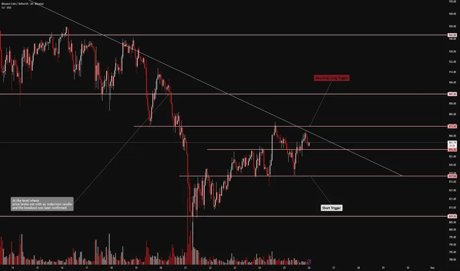 Since yesterday, BNB formed an almost equal low around $837 and bounced upward. However, on the 1H timeframe, it printed a lower high compared to the previous peak and failed to break the $873 resistance.