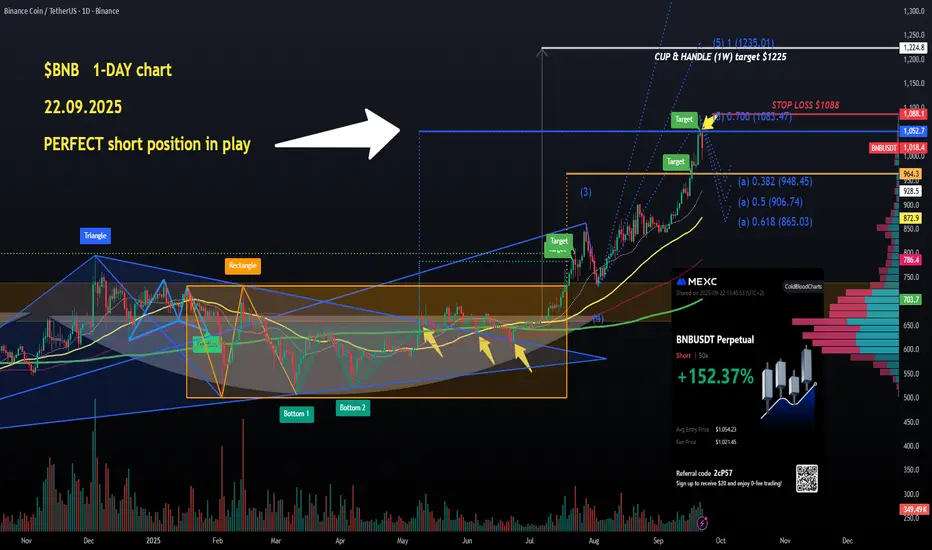 $BNB my short from $1056 has been PRINTING