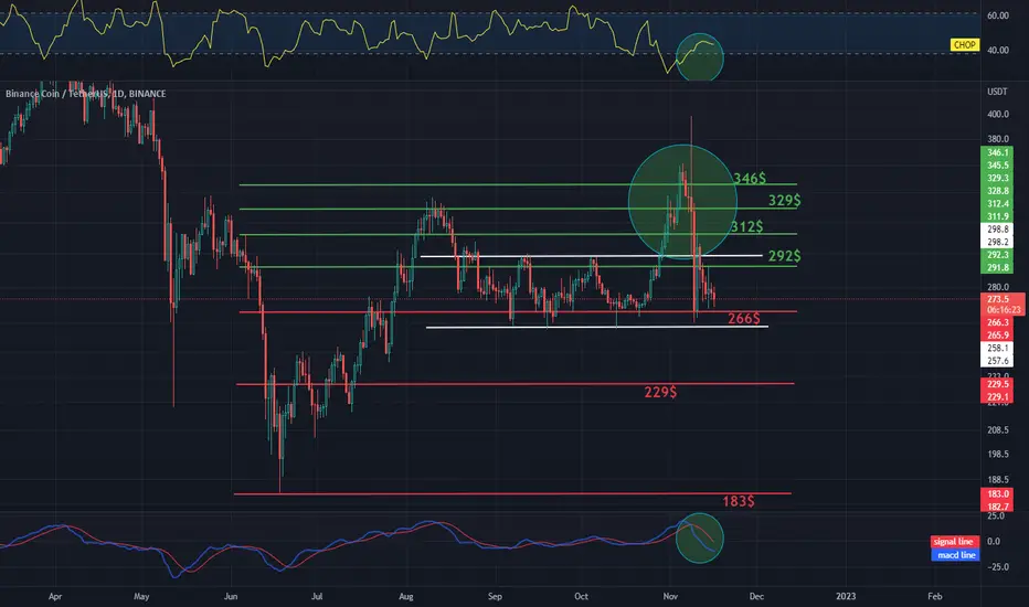 Now let's move on to checking with the Fib Retracement tool what support the BNB price has in case of further declines and here we see that we first have support at $266, but if the price goes lower, we have further support at $229 and $183.