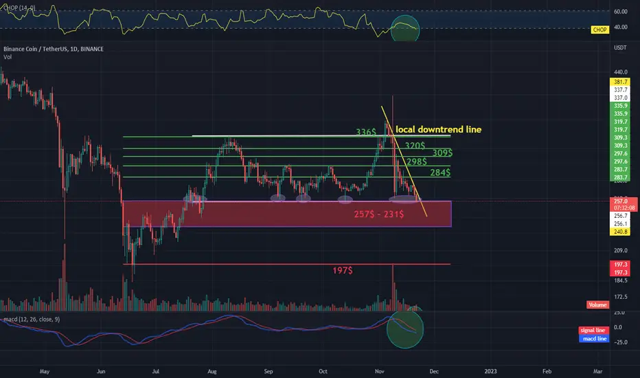 As you can see, the CHOP index indicates that the energy is touching the bottom, the MACD indicator indicates a downward trend, and the volume, although very small, indicates the advantage of sellers.