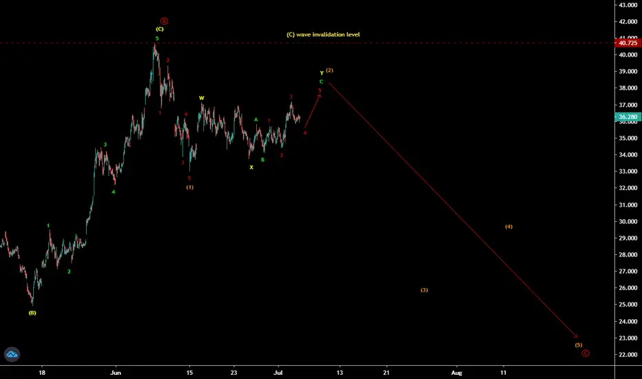BNP Paribas SA (BNP - France) is in 2nd wave correction as wxy correction of down impulse cycle of C wave. Wait for 5th wave completion of c wave up of y wave in 2nd wave correction. . Keep eye on invalidation level of 40.66 as Impulse wave invalidation level. In 4 hr time frame, it is in ABC zigzag down move, where C wave down is in progress, which must be in impulse move down. In weekly time frame, it is choppy, so hard to predict major move for either the direction.