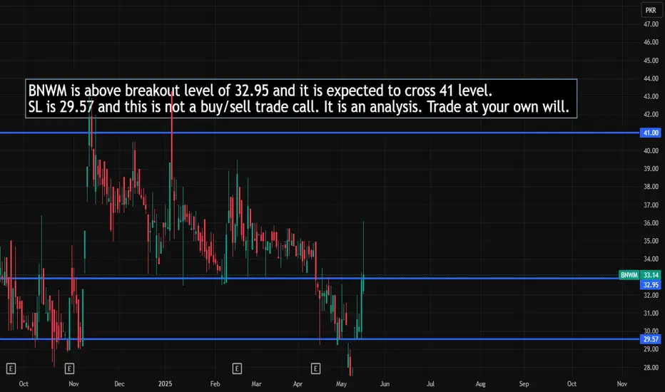 BNWM is above breakout level of 32.95 and it is expected to cross 41 level.