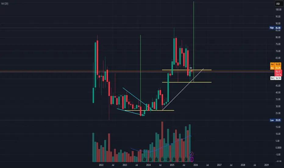 My short term price target is 62, and the reason for that is the 20-Aug-2025 and 15-Sep-2025 role reverse from support to resistance (Daily Chart), and considering BROS volatility, it's conservative, yet, risky in nature.