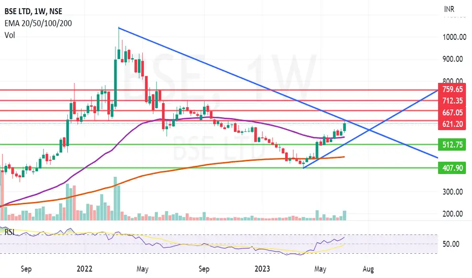 Entry can be taken after closing above 622. Targets in the stock will be 667 & 712. Long term target in the stock will be 759. Stop loss in the stock should be maintained at closing below 540.