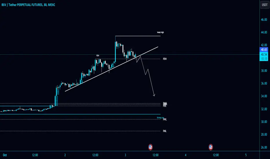 Wait for Breakdown of trend line and PDH $39.90 to Short $BSV.