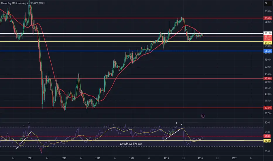 Looking at the Rsi check every time below the yellow line alts do well I fear this time won't be any different but this time NFA but would be a bigger shine that th market cycle is over. will be looking for cheaper BTC 42-50k.