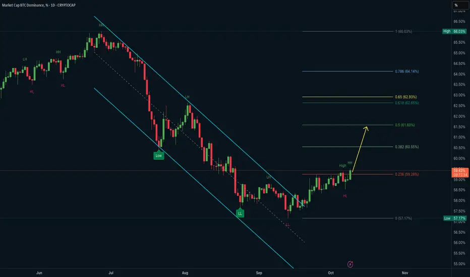 BTC Dominance Breaks Structure – Eyes on 60.5% to 62.9% Targets