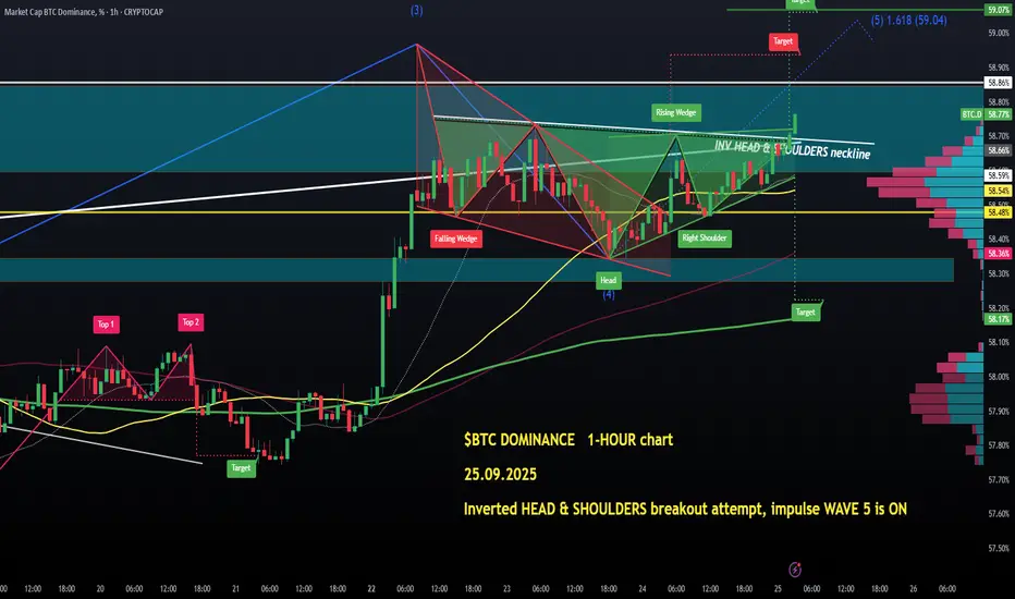 Looks like we are seeing the worst case scenario (for #Alts lol) unfolding as #BTCdominance is attempting a breakout from its BULLISH chart pattern (inverse head & shoulders targetting 59.07%).