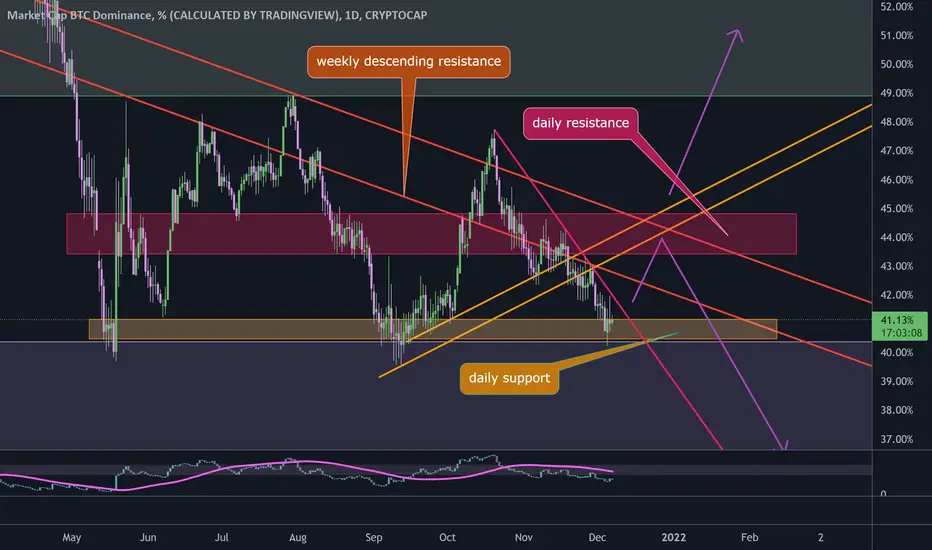 Bitcoin Dominance is at daily support zone and struggle to break it down.