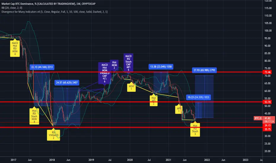 BTC dominance is already very low; but interestingly, in the weekly timeframes, it shows bullish divergence move on 3 different oscillators!