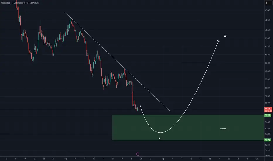 One important point to note is the green zone, which is a strong support area. It is possible that the diametric/symmetrical structure we discussed in earlier analyses is still intact. In that case, wave F of this diametric pattern may complete in the green zone, and candles could then enter wave G | a bullish wave that may trigger a significant correction in altcoins.