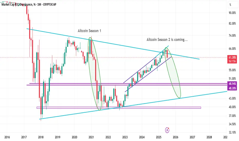 It all goes back to the literal meaning of Bitcoin Dominance. If BTC.D is approaching 100%, nearly all the money is concentrated in Bitcoin alone. But when this dominance starts dropping, it signals that capital is beginning to rotate out of BTC and into altcoins.