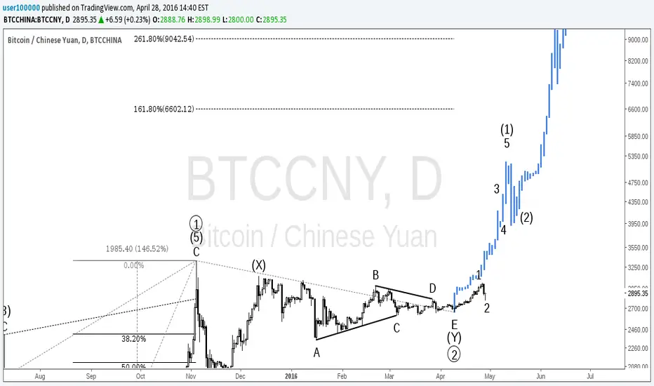 I've copied this impulse wave pattern (in blue) from 2013 to help me visualize how the market may unfold. Market is still in early stages of wave (1) at this time. It would be interesting to see how closely the market will follow this path.