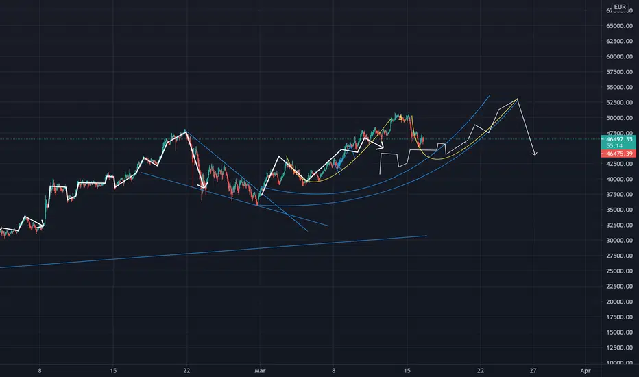 We see the start of a huge parabolic to push out to the next top before we see another big correction. We hit about 43000euro or 51000 usd before we start to move up again.