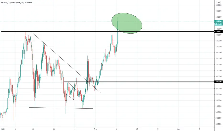 Bitcoin broke through the key resistance level of 4354770, and further on it is necessary to monitor the situation, as a false breakout can be formed from this level and the currency will go into a deeper correction, whereas in case of consolidation and impulse outburst formation, the probability will shift towards further growth.