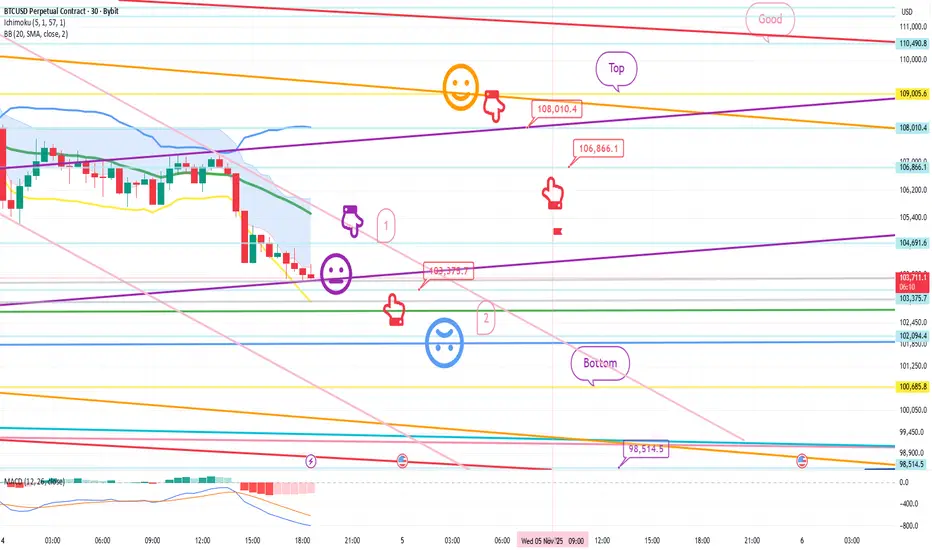 2. $108,010.4 long position primary target -> Target prices are set at Top, then Good in that order. If the strategy is successful, 106.8K will be the point where you can re-enter a long position.