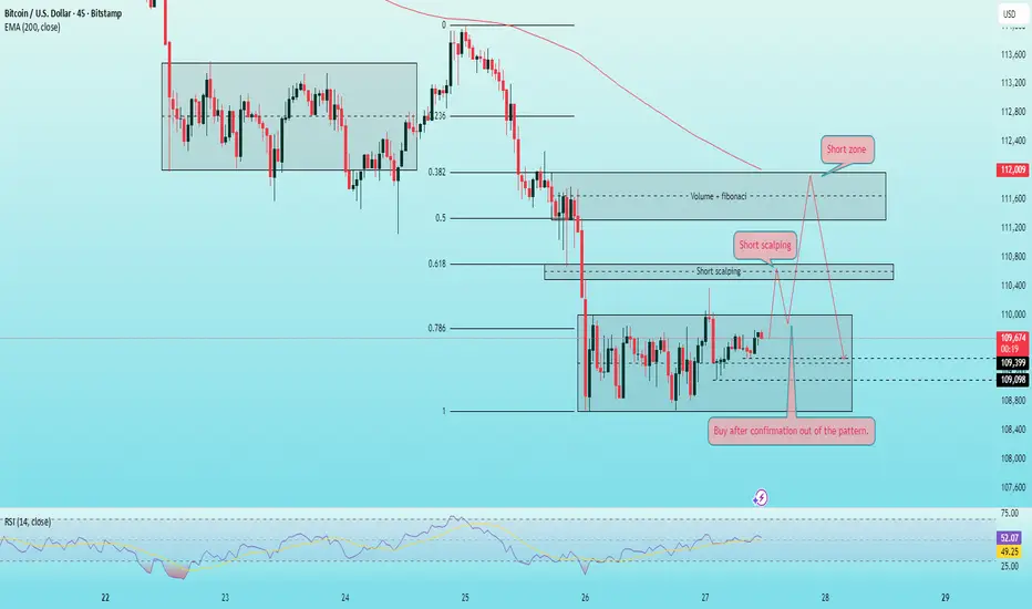 For short opportunities, the 110,700 and 111,900 zones line up with both Fibonacci retracements and Volume Profile resistance, making them attractive areas for scalping or countertrend plays.
