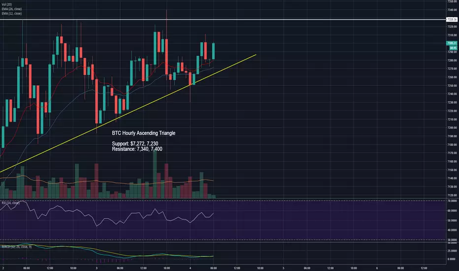 This has kept us tight, knowing that a break is imminent this morning either losing 4 hour higher lows, or breaking $7,340 for continuation.