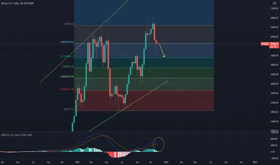 The bitcoin continued the movement down after small correction. Technical indicators on the week chart indicate continuation of the movement down (in particular MACD). Level 0.618 according to Fibonacci, that is 51000 should be the following purpose of decrease.