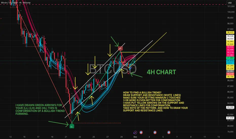 strong bullish move incoming with support and resistance lines in place with your HH's and HL's. very strong trend. Please note from the latest updates that a break above $92,500 where my LH is placed and waiting for a breakthrough on the chart it could lead to gain towards 97-$100,000, while failure may drop to $85,000.