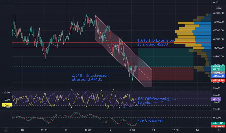 The recommendation will be to go long at market. Stop loss will be set around the 43600 price level and a target of 45200. This produces a risk-reward ratio of 1.47.