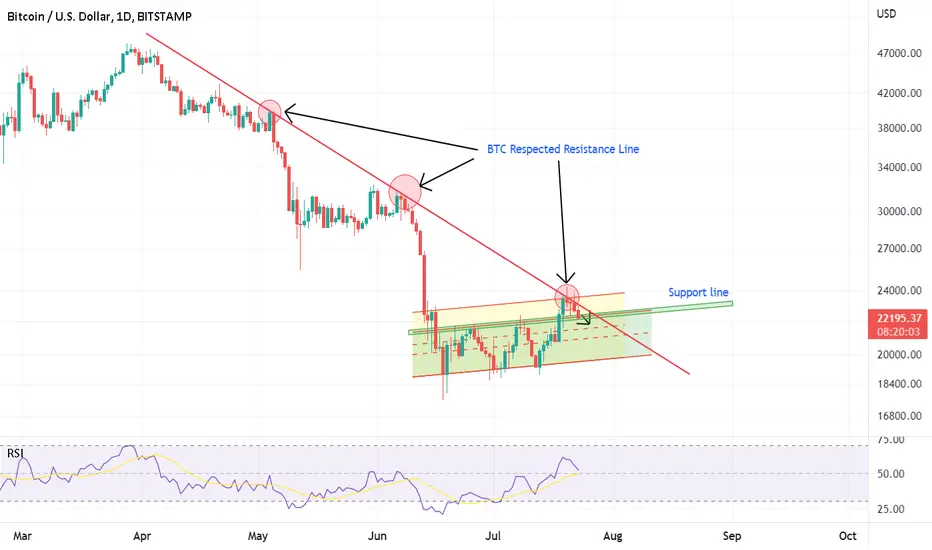it seems BTC is Continuing to form a descending flag pattern. A loss of the current support level would turn the recent rally into a potential upthrust and could cause the price to decline to around $19,600.