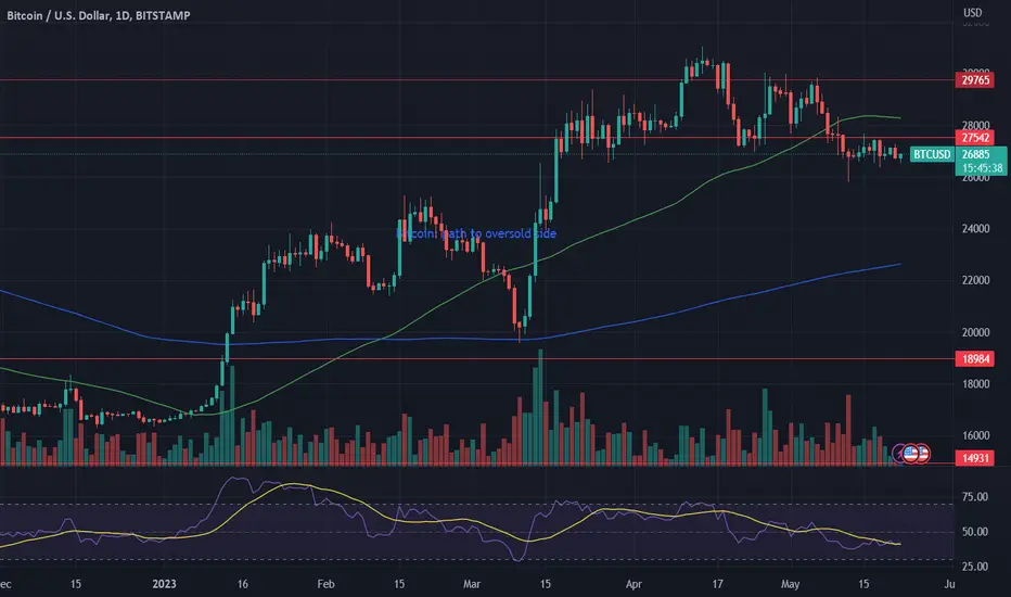 The short-term road toward the $FWB:25K support line was clearly open two weeks ago. During the previous week, BTC did not manage to test a short term stop at $28K resistance, and continued with pressures toward the downside. The probability of reaching the support line at $FWB:25K has increased. However, as per current charts, there is some probability that the BTC will try to test a short term stop at $28K one more time, before it finally reverts to the downside and levels modestly above $25K.