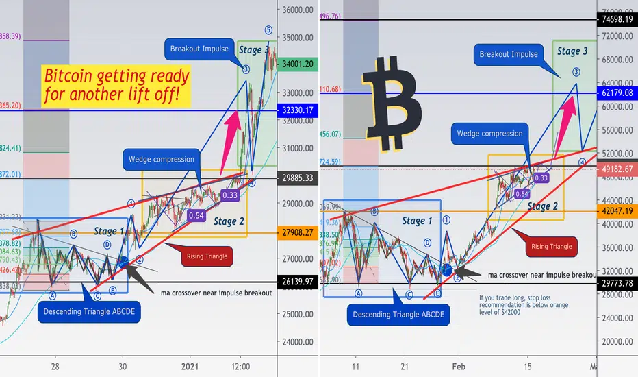 This time seems like we are in the middle of Stage 2, almost finished Wedge compression. Looking forward breakout from resistance of 1.618 fib at $49724 and impulse leg up to $62100+ as stage3, and there I will expect major pullback to $49k.