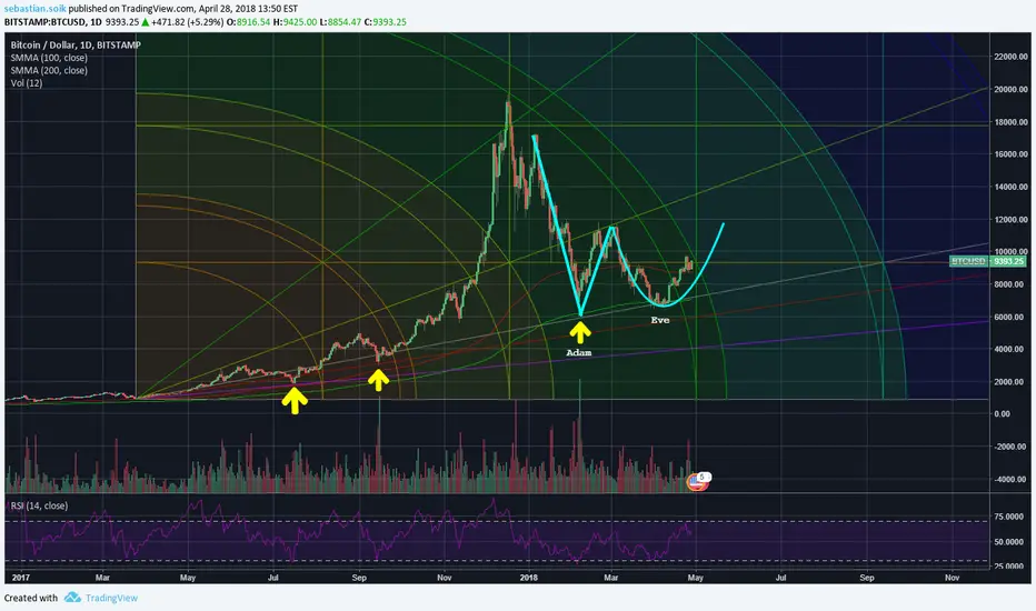 The Gann Sphere shows an interesting energy point on May 1st. To validate the positioning I marked some almost perfect crossing points with yellow arrows.