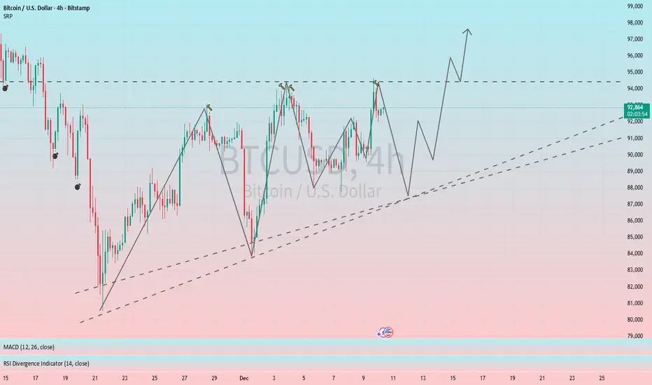 From the 4H chart, BTC's short-term trend has formed an ascending triangle pattern, which is a typical bullish pattern. Short-term resistance is located at 93500-94500, a break above this level would likely lead to further gains. The key support level to watch is 88000-87500. If the price retraces to this range, we can consider going long on BTC.