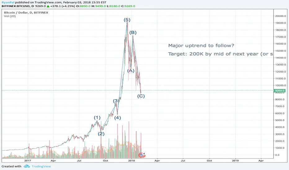 Too early to call it the end of wave C in this time frame but it seems like we are there. What should follow is consolidation followed by the next impulse wave (1-2-3-4-5) to new ATHs in the coming time.