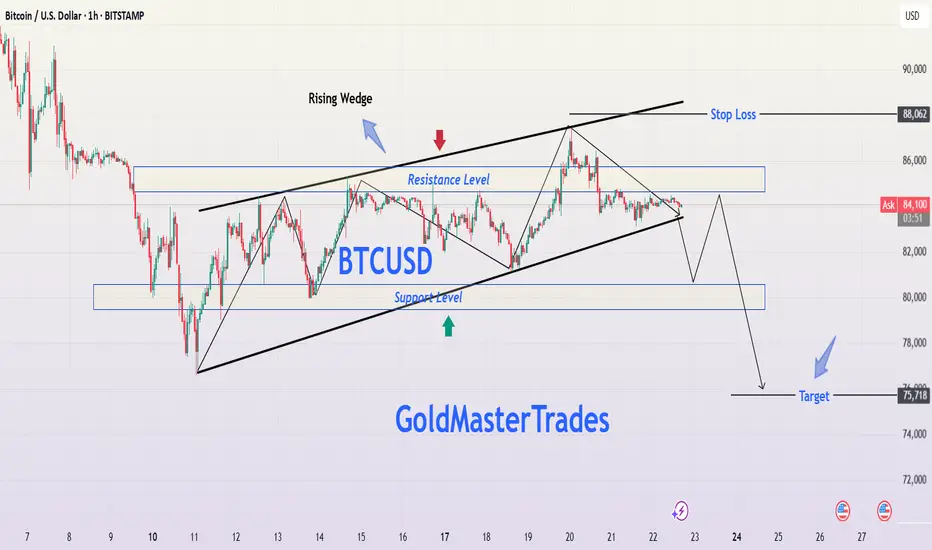 Bitcoin is forming a classic Rising Wedge, which historically leads to strong downward movement once it breaks support. If BTC follows the expected scenario, a high-probability short trade is in play, targeting a decline toward $75,718. However, traders must wait for confirmation and manage risk effectively to avoid fakeouts.