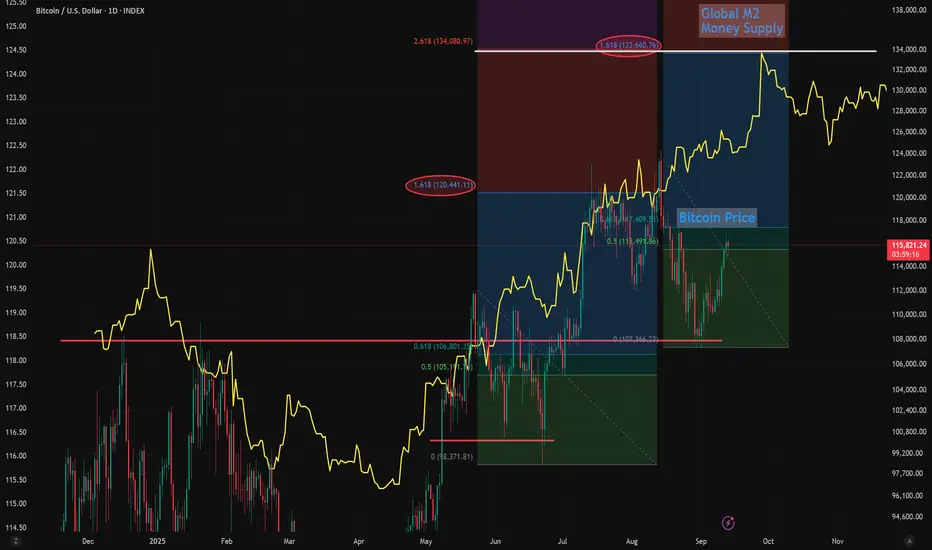 So using the most recent high/low swing, points toward around $134k on the 1.618 which is coincidentally the 2.618 extension from the first Fibonacci.