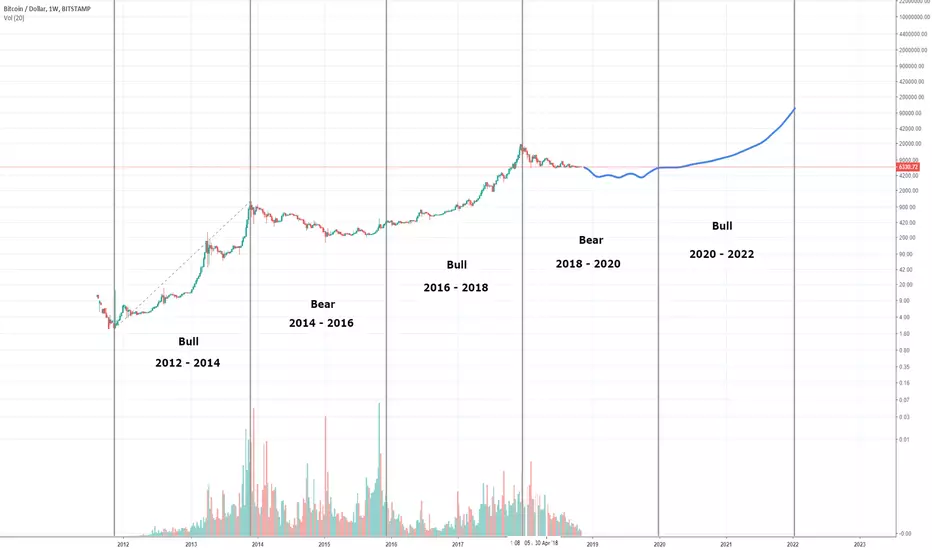 Historically, Bitcoin has two years of bull followed by two years of bear. According to this cycle, next bull market won't start until late 2019 - beginning of 2020. #forgiveme #permabulls