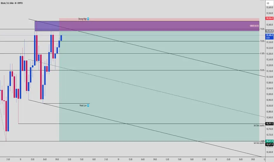 Price tapped into a premium Order Block between 103,438–103,526 🔴