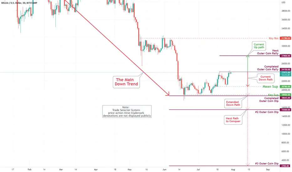 After completing on July 20 our Outer Coin Rally of $24,150 and retreating to Mean Sup $20,780 (See Bitcoin (BTC/USD) Daily Chart Analysis For July 22), Bitcoin bounced back to competed Coin Rally and showing signs of extending its rally to Outer Coin Rally #27,800. However, if all fails, the coin will take us back down to Mean Sup $20,780, with a strong possibility to Key Sup $18,900 and beyond.