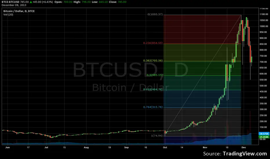 On the BTC-e chart bitcoin hit it's 50% retrace and bounced. A run towards the $450 or the 61.8% is not out the question.