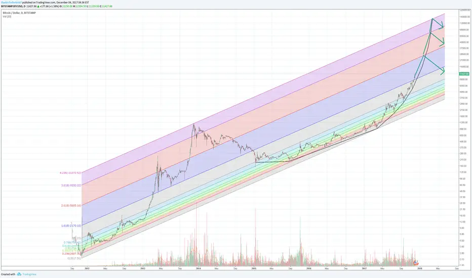 I drew the logarithmic trend channel and these are the possible reversal zones: