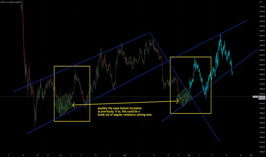 bitcoin is forming a potential bottom pattern on the shorter time frame. if its plays out, this could confirm a break out of angular resistance.
