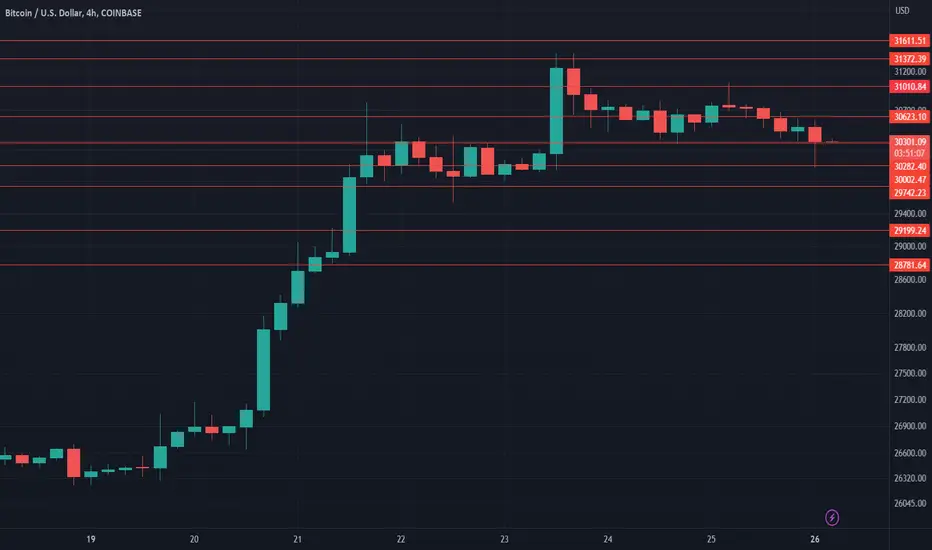BTC #BTC $30,282 support in effect, reattempted $31,010 yesterday. Last 4H close looks good, 1D closed bearish, $30,002-$30,282 support range testing. $30,623 initial resistance. Needs to take $31,611 support to ensure no fakeouts.