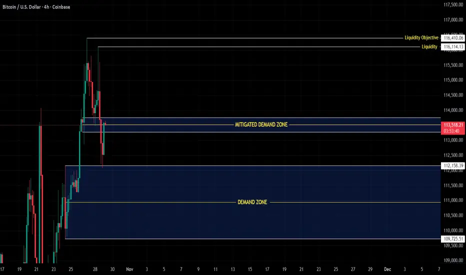 $BTC/Price has reacted strongly from the deeper demand zone (112.15K – 109.70K), showing a clean bullish CHOCH followed by a confirmed BOS on the lower timeframes — signaling early structural alignment for potential continuation.