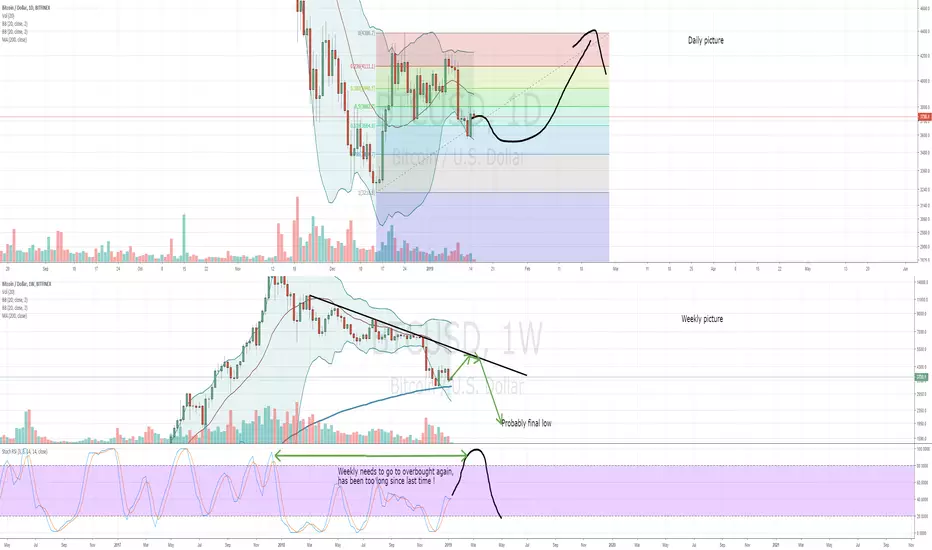 It needs to be overbought again on weekly, so that it can prepare for the next dump, which hopefully will be the final one.