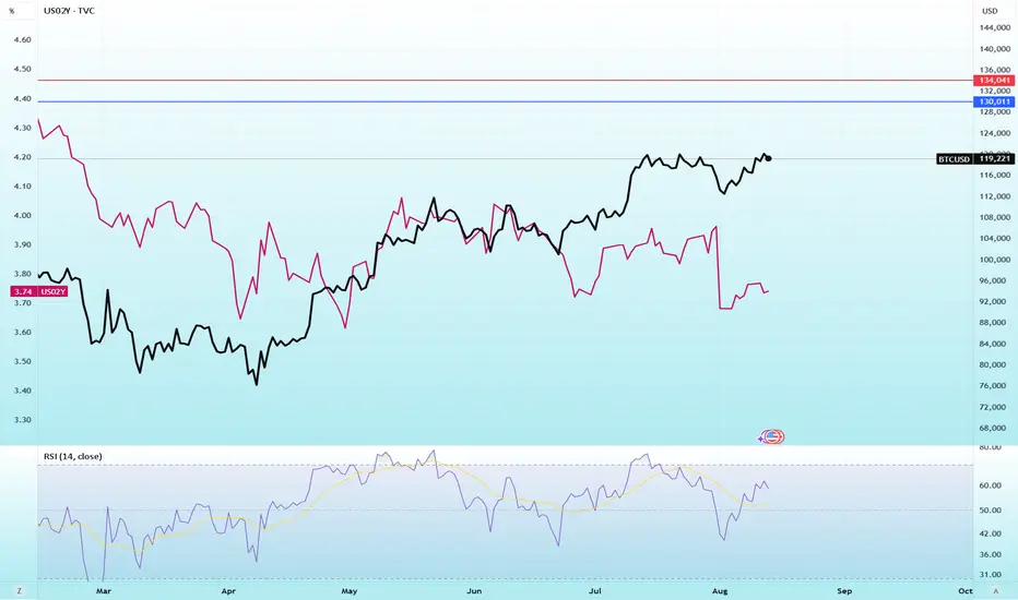 BTC Daily Chart and the US 2 years Treasury Bonds