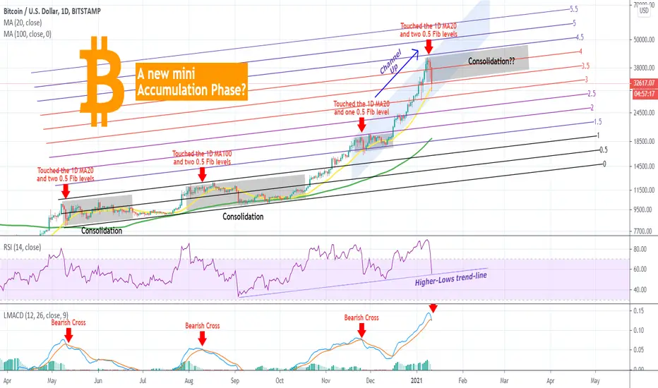 Also, I can't neglect to mention the Channel Up that we are in since late November. What do you think? Can this be enough to maintain the Channel or we are ahead of a multi-week consolidation within the 4.5 - 3.5 Fibonacci extension levels as it happened after every LMACD Bearish Cross/ 1D MA20 contact? Feel free to share your work and let me know in the comments section!
