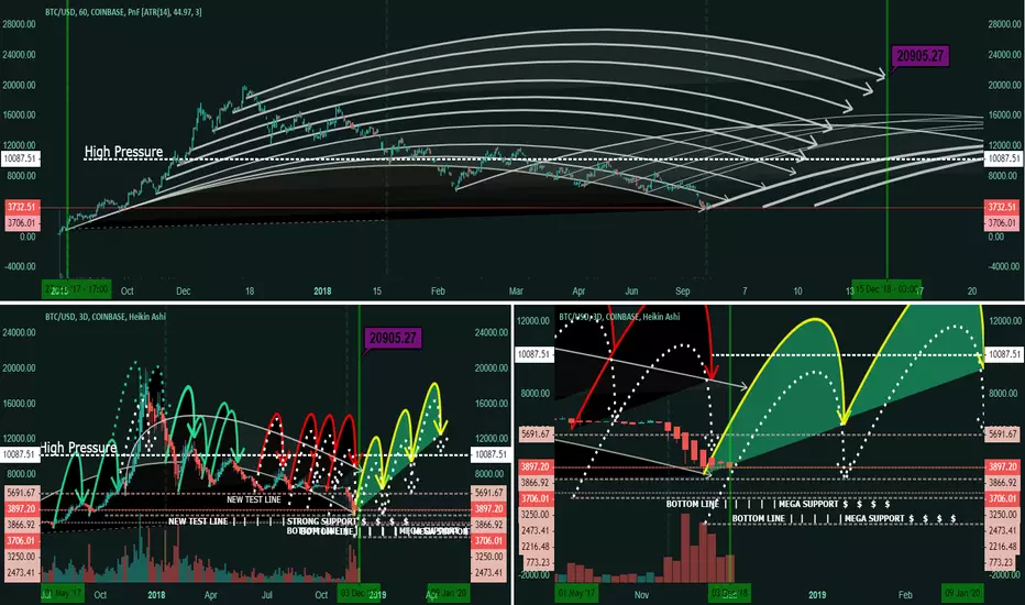 The top chart have identical curve lines that are attached to many test areas. The 1st of these lines is at the current price to the start of the bull run. The arrows at the end of the top chart, show what can happen based on previous movements. Tom Lee has stated that we can get back to 20k this year and since moved his prediction down. In the top chart we see that this could still happen. I'm not saying it will but It would be a mistake to say that it CAN'T HAPPEN.