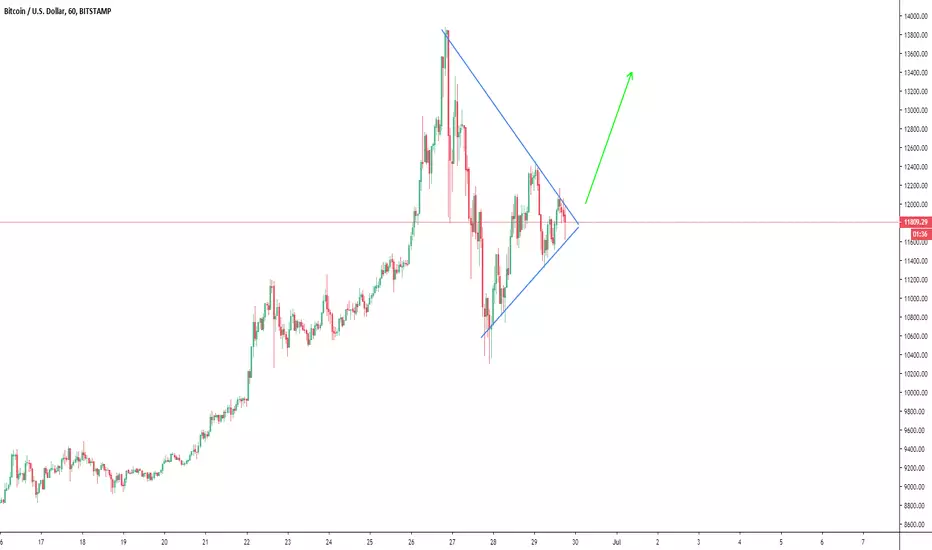 Waiting for the price to break out of this triangle formation. If it will break to the upside (60% chance in my opinion) I exect the price to reach 14,500 $.
