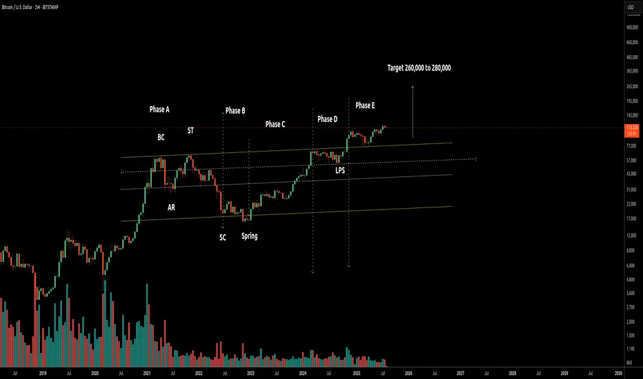if the wyckoff methodology is applied then this is a re-accumulation phase with a first target in the 150k area followed by a main target in the 260k to 280K zone.