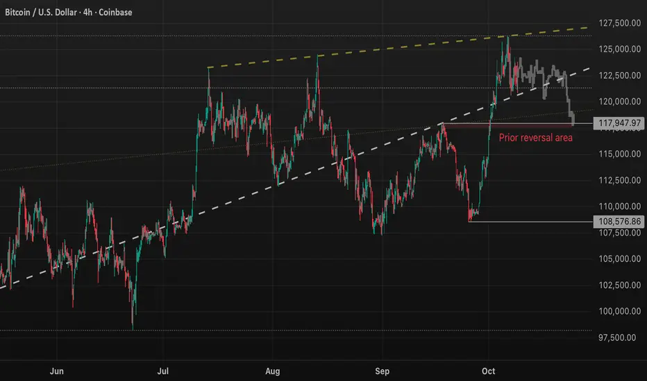 I cloned then reduced the volatility of the July ATH-reversal by fitting to the most recent ATH-reversal price action. The reversal low is set to an area ~117k that has prior been an area of resistance/support and trend reversal.