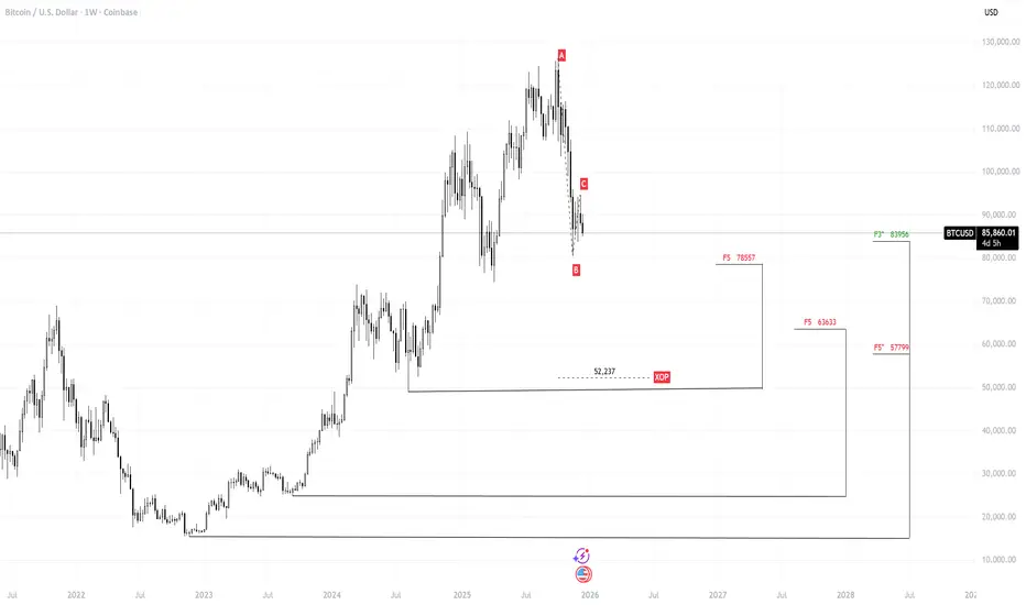 The XOP target of the current downside swing is located around $52,237. Given the structure and the absence of bullish signals so far, a test of this level remains a high-probability scenario.